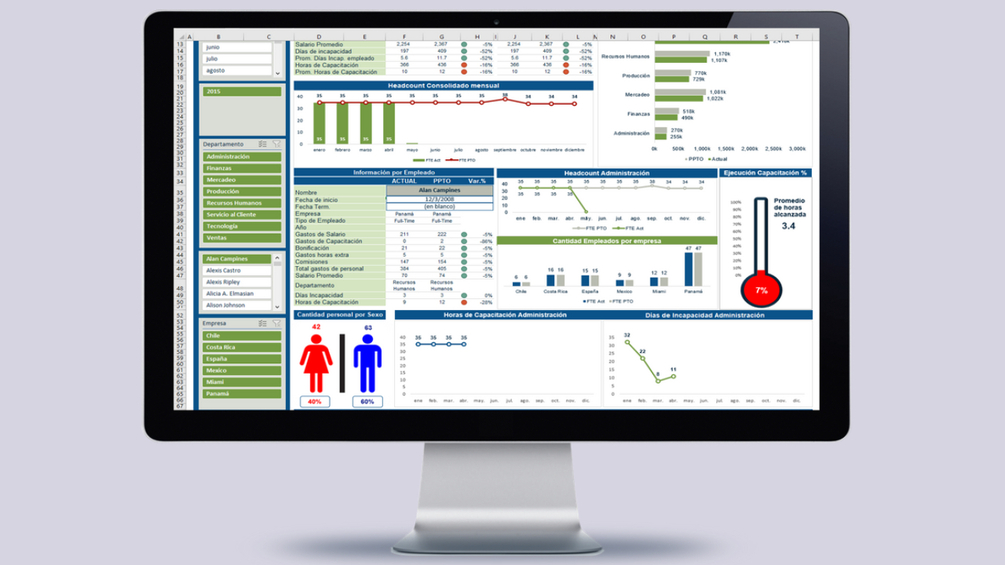 Modelo en Excel para realizar seguimiento a los indicadores claves de Recursos Humanos, Gastos de personal, horas extras, etc.. Solo necesitas tener un conocimiento esencial de Excel para editar el archivo y adaptarlo a tu necesidad.